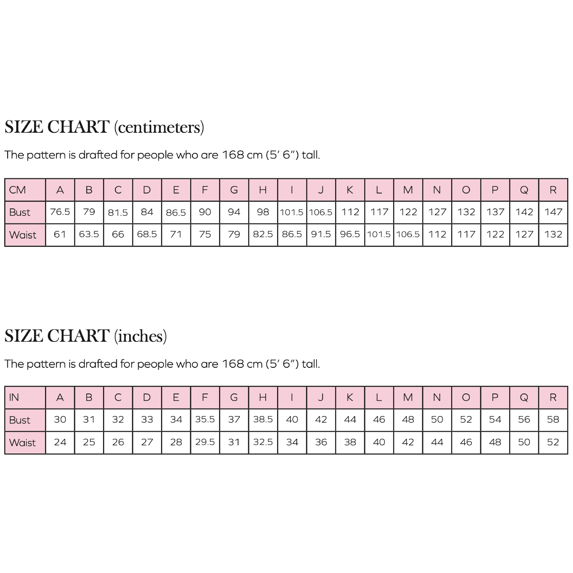 A4/Letter: 9 pages for the bodice, 38 pages for the half circle skirt, 51 pages for the gathered skirt